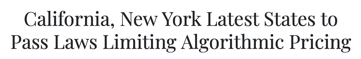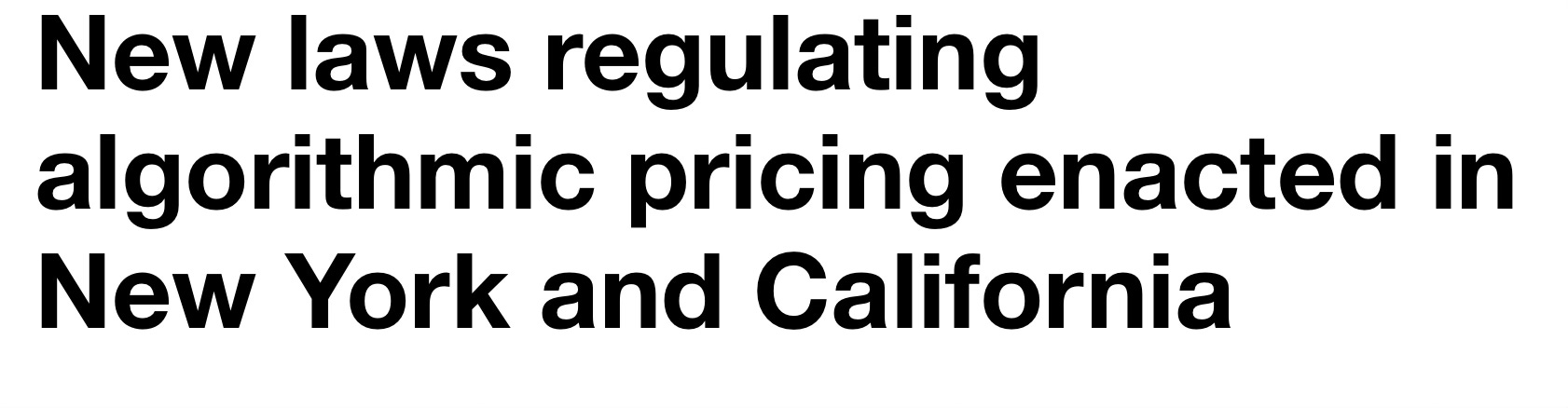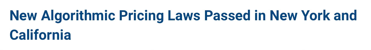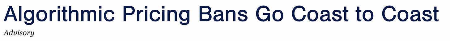 Law firms and trade association publications took notice, sending out a flurry of advisories and articles about these two states — with economies large enough to be their own countries, honestly — leading the way on algorithmic pricing