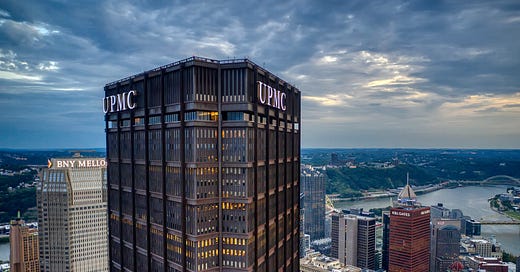 UPMC is a notorious monopolist, with some 40 hospitals, an insurance network, and a host of other investments under its banner, and it uses its power in the Pittsburgh region to corner the local labor market, degrade working conditions, hoover up tax preferences, and ultimately undermine the care provided to patients. It’s a “non-profit” that is building a global empire of facilities and paying its executives tens of millions of dollars annually.